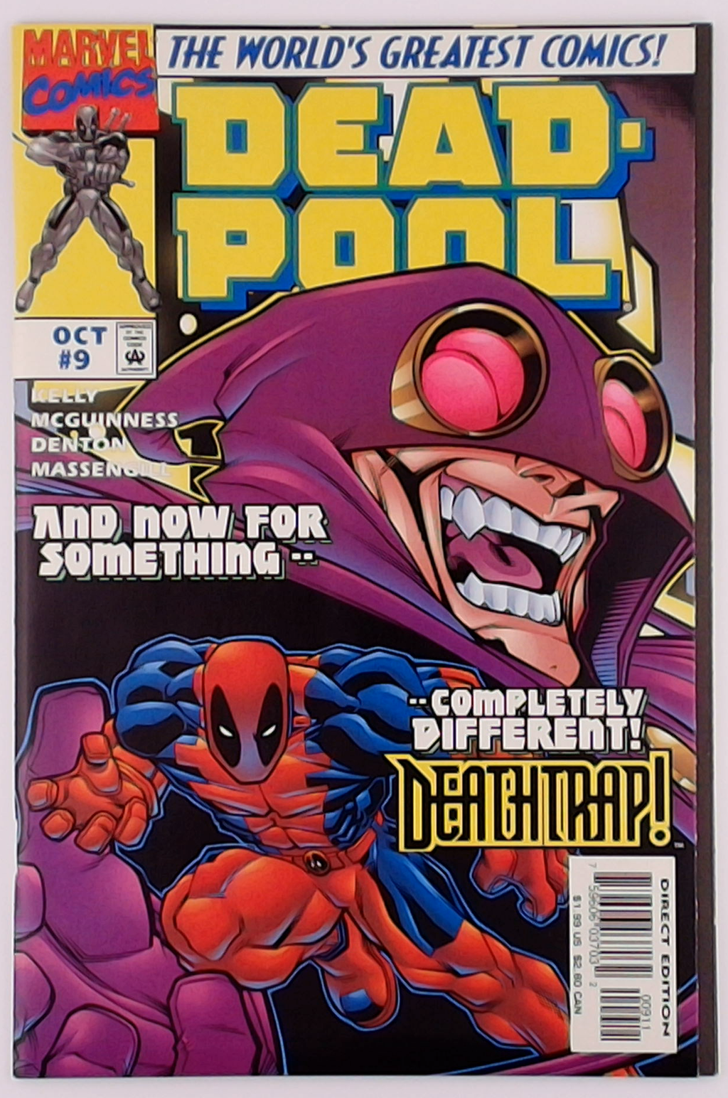 Cover pencils by Ed McGuinness, inks by Nathan Massengill. Ssshhhhhhhhh! (or Heroes Reburned), script by Joe Kelly, pencils by Ed McGuinness and Shannon Denton, inks by Nathan Massengill; Al becomes a little worried as Pool begins to show signs of his sanity slipping; DP asks Patch for an assignment worthy of a good guy; He ends up leaving with a mysterious stranger who comes to Hellhouse looking for someone to help him recover a kidnapped princess; Of course, it all turns out to be a trap set by new villain Deathtrap who is really into...well...death traps; DP discovers a little too late that Al has messed with his weapons as a practical joke; Al and Weasel get to know each other a little better. Behind the Scenes: Text piece and sketch art for the giant-size story in Deadpool #11.