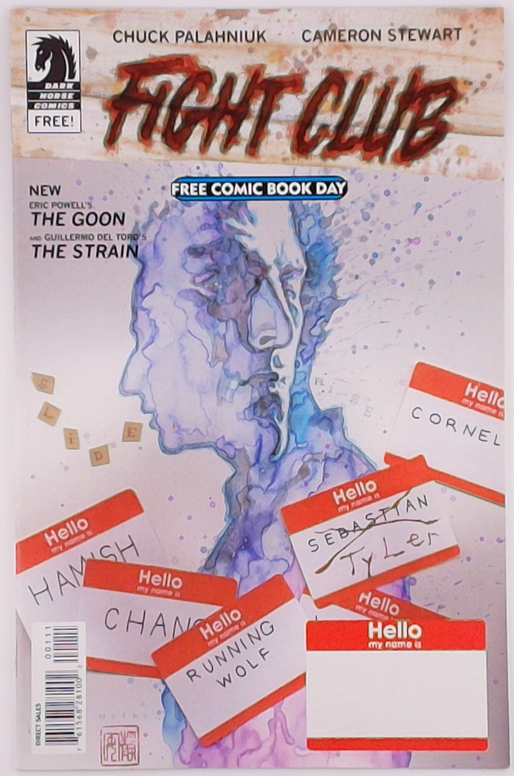 Written by Chuck Palahniuk, Eric Powell, and David Lapham. Art by Cameron Stewart, Eric Powell and Mike Huddleston. Cover by David Mack. Dark Horse Comic's most thrilling FCBD to date . . . Chuck Palahniuk and Cameron Stewart premiere Fight Club! Eric Powell with all-new tragedy in The Goon! And Guillermo del Toro presents an all-new chapter from The Strain! Need we say more?
