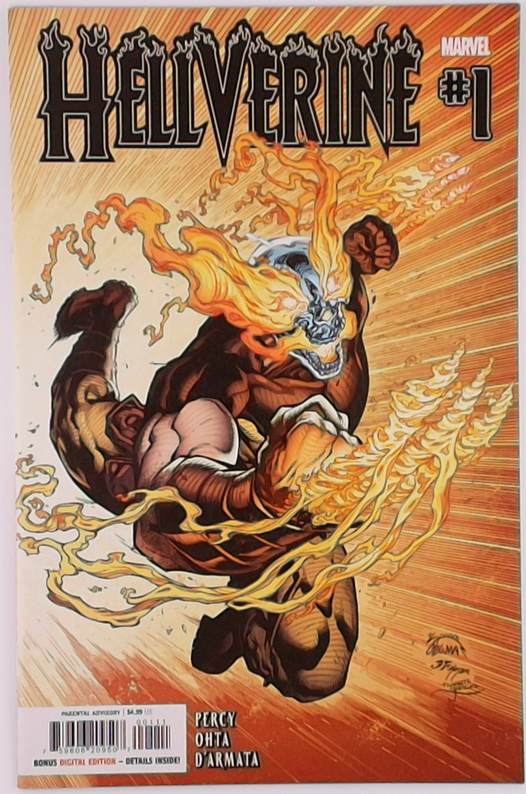 RIDE TO HELL AND BACK IN HELLVERINE'S FIRST EVER SOLO SERIES! Because you demanded it - the return of the HELLVERINE! When a DEMONIC FORCE known as BAGRA-GHUL first came to earth, it brought LOGAN and GHOST RIDER together to hunt it before it possessed WOLVERINE. But now, in the present day, what event will put the Hellverine back on the streets...and is he slashing his hellfire claws for good or evil? And, introducing the ALL-NEW HELLFIRE WARRIORS! Don't miss the launch of the all-new series, brought to you by Hellverine co-creator Benjamin Percy (WOLVERINE, GHOST RIDER) and blazing hot talent Julius Ohta (ALIEN, VENOM)! Rated T+