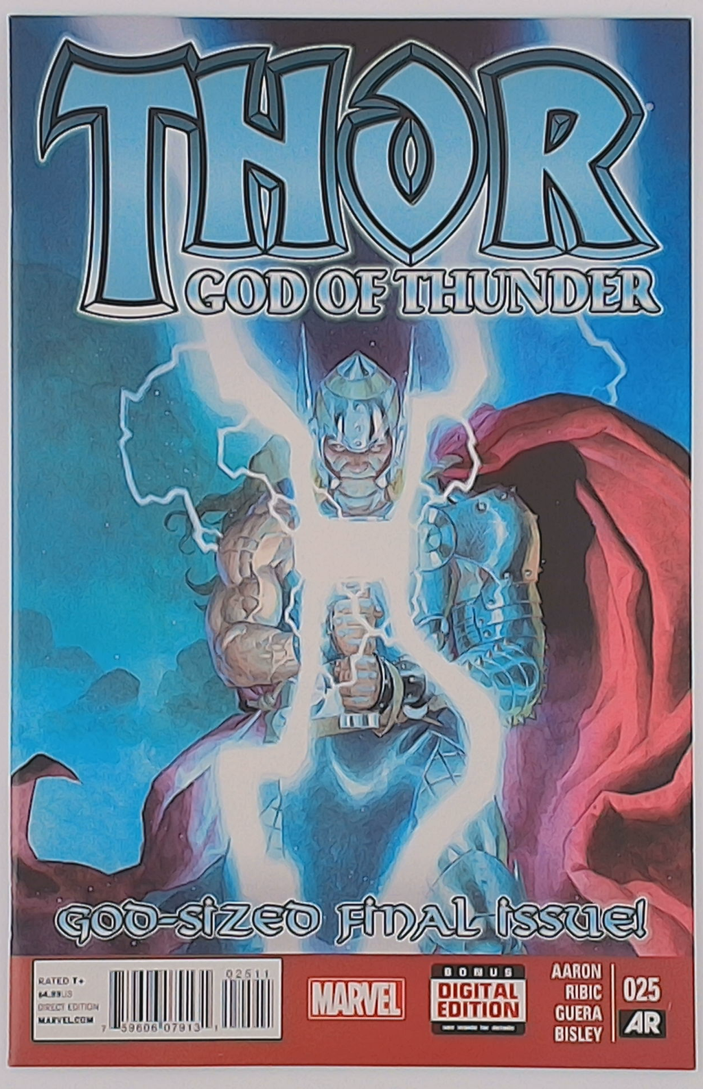 Redefining the word 'epic,' it's the god-sized 25th issue of THOR: GOD OF THUNDER featuring an amazing artistic line-up! - Young Thor vs. Frost Giants! - The untold origin of Malekith the Accursed! - King Thor's granddaughters uncover a startling secret chapter from the history of the Thunder God! - Thor deals with the shocking fall-out from ORIGINAL SIN!