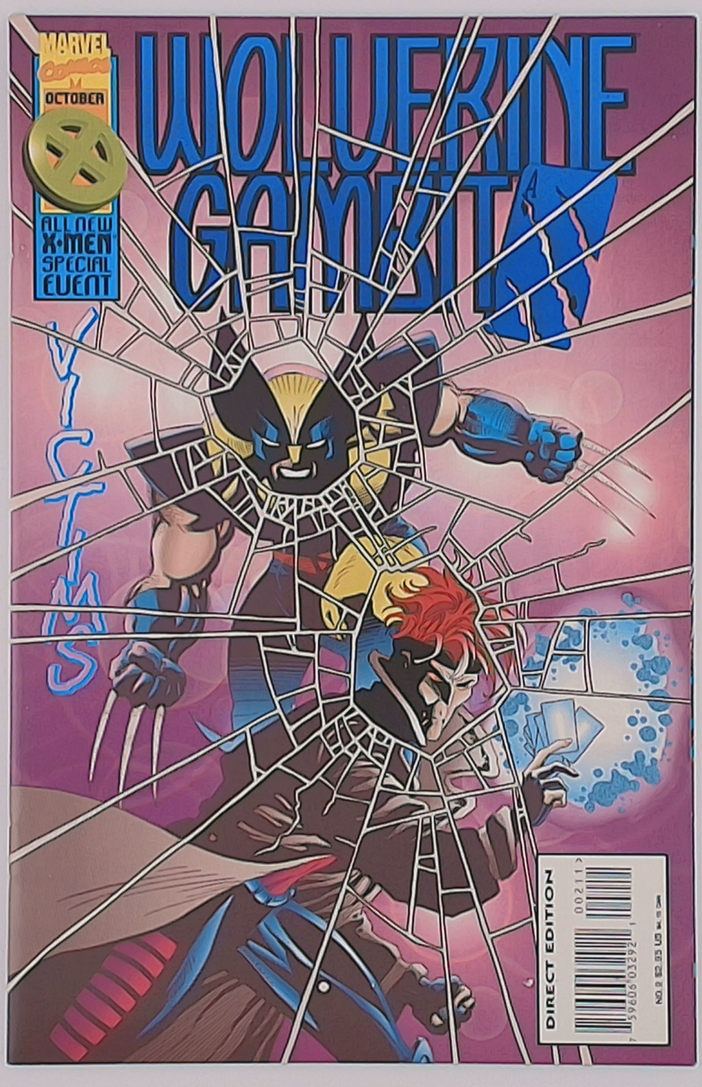 Blue foil title. Victims Part 2: In Deep, script by Jeph Loeb, art by Tim Sale; With women being slashed to death in London and a mutant killer being the suspect, Wolvie and Gambit find themselves surrounded by police, intent on arresting them; They are helped out of their jam by Martinique who claims to have been sent by Nick Fury; As they crash the getaway car into the Thames and crawl into the dark sewers to escape, Gambit lights a match only to find that Logan has gutted their ally; As they wander the tunnels trying to find a way out, Wolvie begins to suspect that someone is messing with their minds.