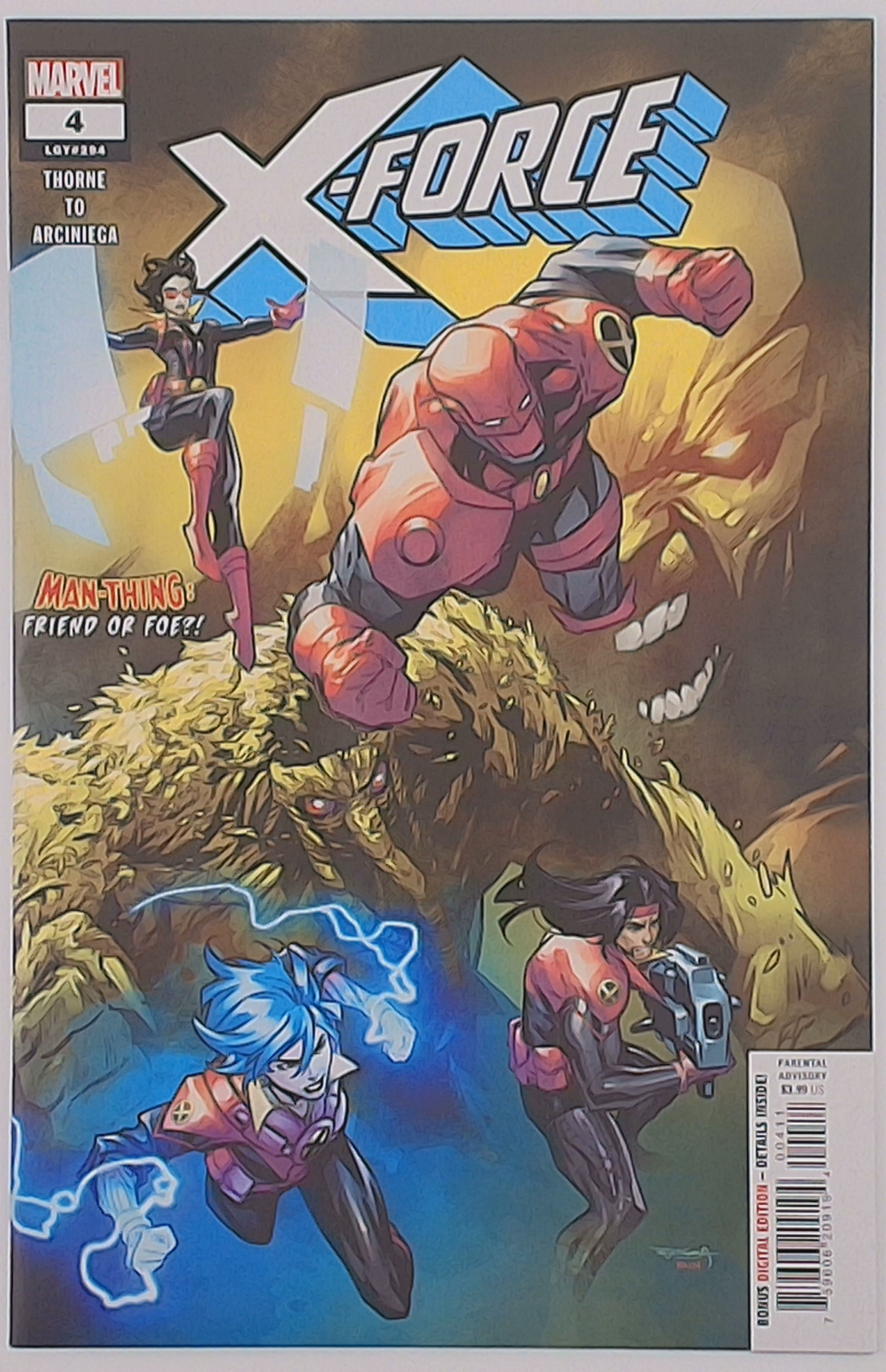 MAN-THING STRIKES AS THE NEXUS OF ALL REALITIES IS AT STAKE! The Nexus of All Realities is in danger - meaning if X-FORCE can't seal this Fracture Node, they've got more to worry about than just one ol' Earth! What extradimensional forces stand ready to take down FORGE's team? And the Nexus' guardian, the MAN-THING - is he friend or foe? The all-new X-FORCE series continues to turn up the heatand wait'll you see what we're cooking! RATED PARENTAL ADVISORY. Rated T+